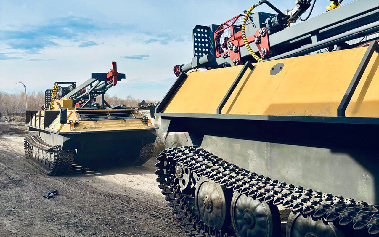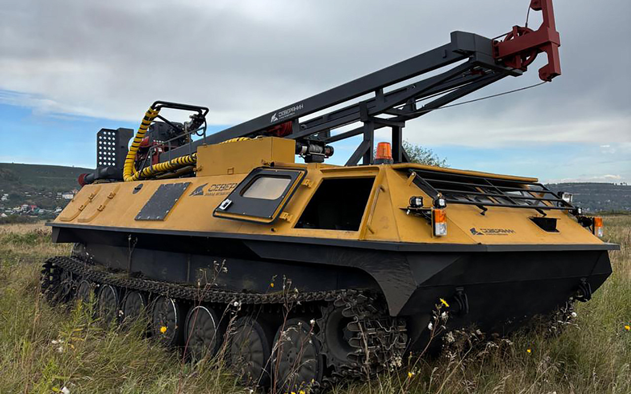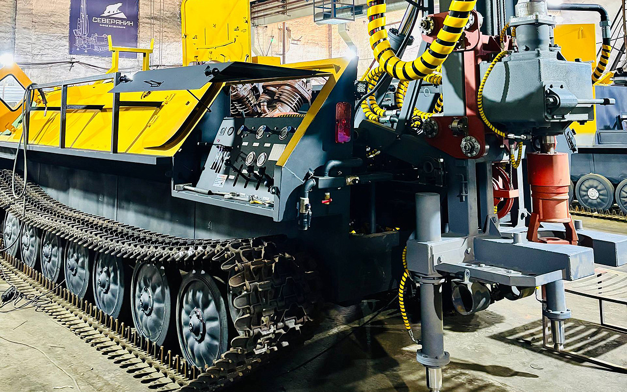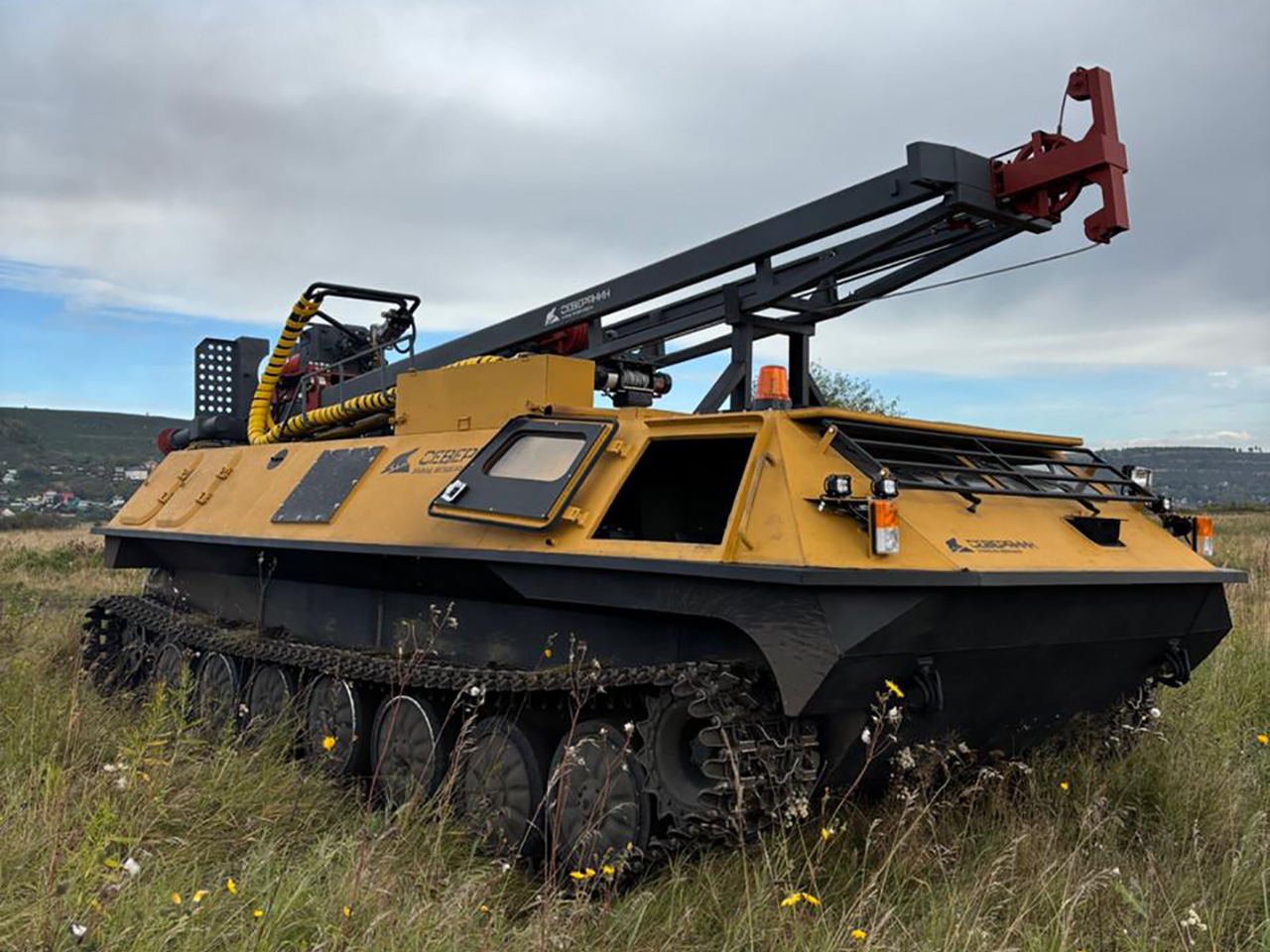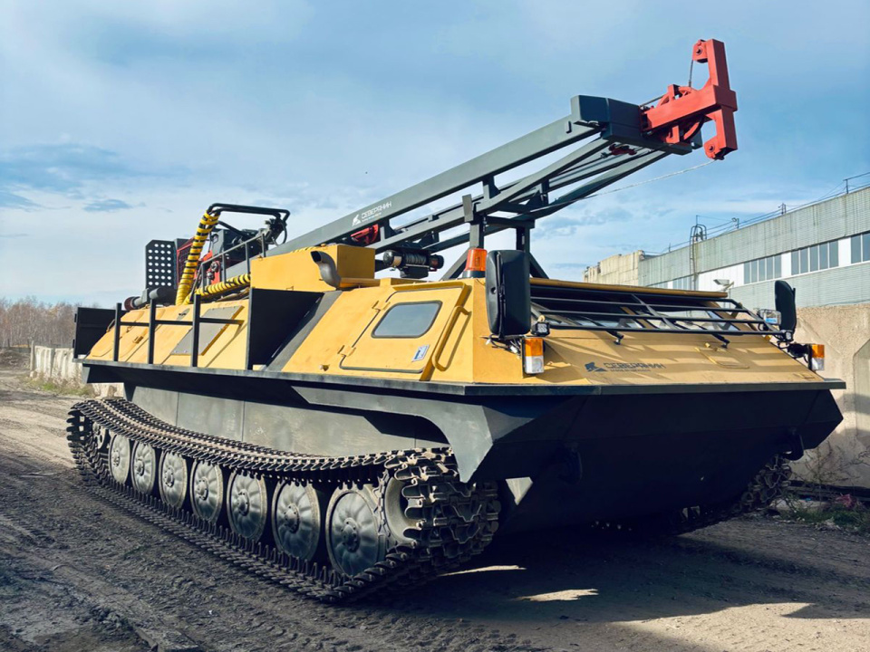 Современный аналог МТЛБу в базовой версии c буровой установкой УРБ 2Д3 (усиленной). Глубина бурения до 300 м.