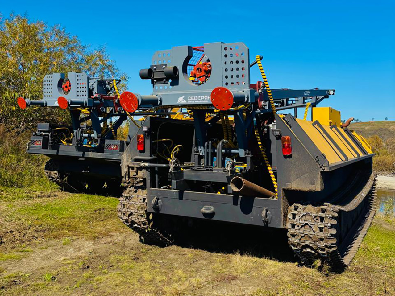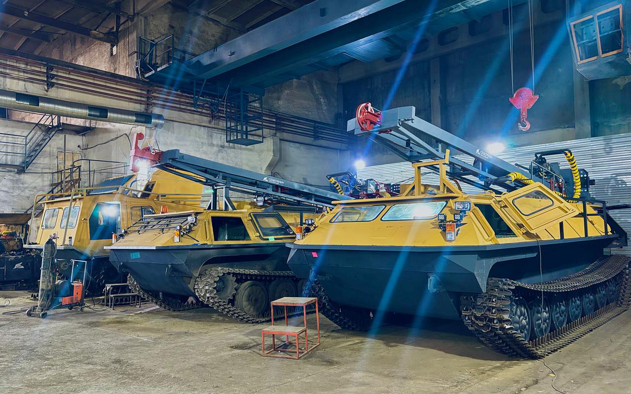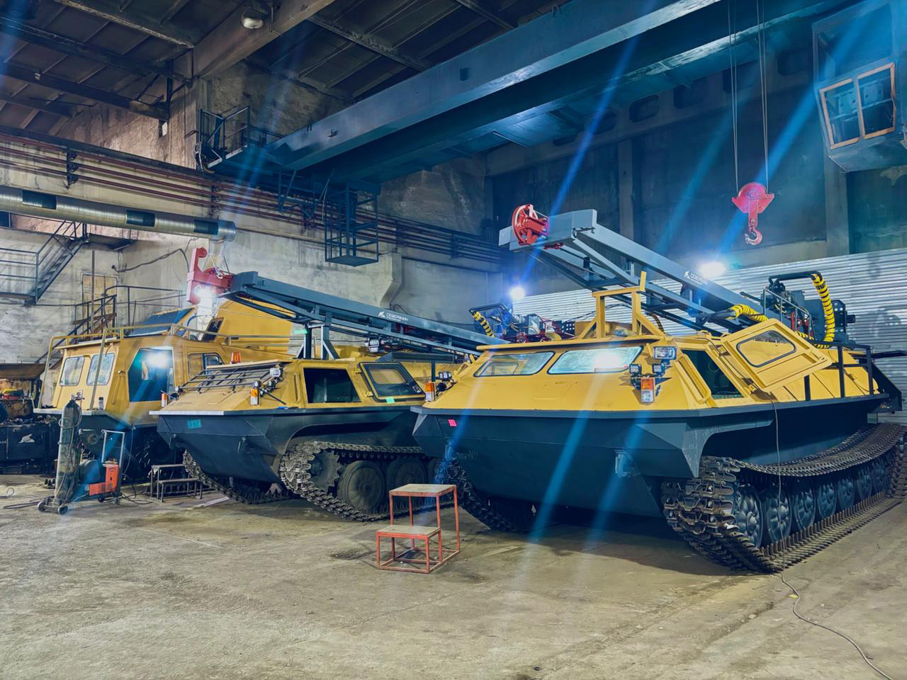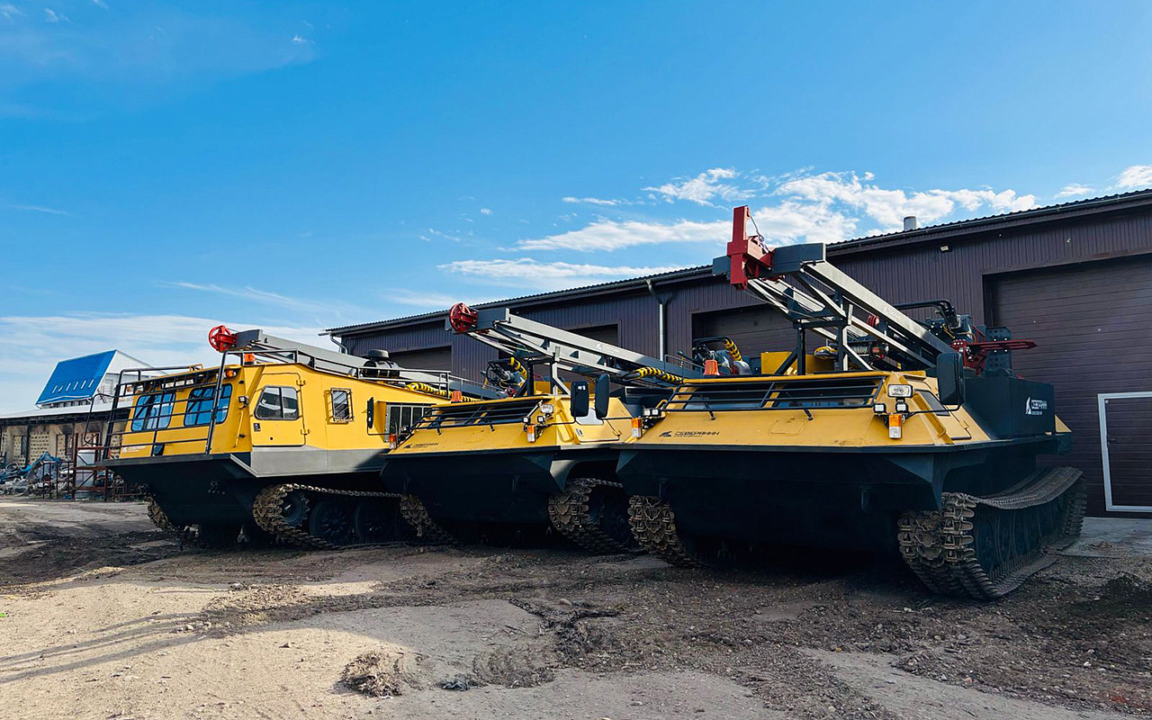 Современный аналог МТЛБу в базовой версии c буровой установкой УРБ 2Д3 (усиленной). Глубина бурения до 300 м.